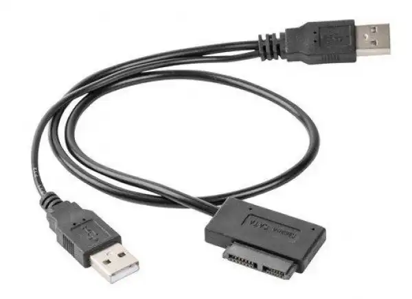 Lako dodajte dodatni hard disk na računarou Nije potrebna instalacija drajvera USB adapter za slim SATA 13-pin SSD, DVD Drugi USB konektor za dodatnu snagu Podržava bilo SATA Slim 13-pinski disk Standardi: USB 2.0, SATA / SATA II (do 1,5 Gbps) Dužina kabla: 50cm Neto težina: 33g