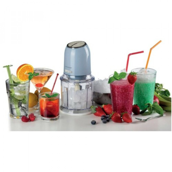 | Seckalica sa 2 brzine, 2 dugmeta i 4 sečiva od nerđajućeg čelika. Mlin za povrće i drobilica za led. Graduirana šolja od 600 ml | |