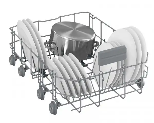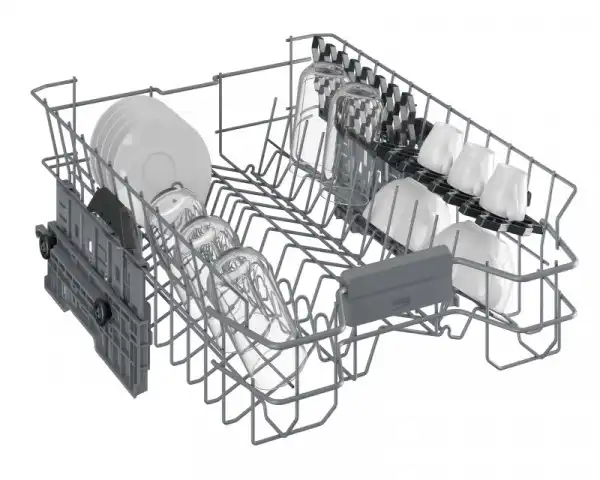 - LED ekran, Senzor za prljavštinu, 2 Police za šolje, Dodatni prostor za šerpe i tiganje, Poklopac dozera koji se lako otvara, Gornja korpa se može postaviti u 3 položaja, LED indikator, Sistem za negu čaša, Uska korpa za escajg