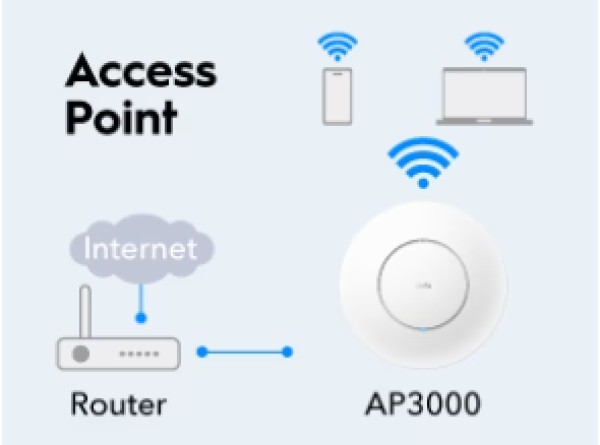 Verzija modela AP3000 1.0 CPU čipset: MT7981BA Detalji CPU-a: 1,3 GHz Dual-Core CPU Memorija/Skladištenje Flash/ROM: 256 MB (2 Gbit) NAND DDR/RAM: 512 MB (4 Gbit) DDR4 Wireless 5 GHz Wi-Fi brzina: 2402 Mbps 2,4 GHz Wi-Fi brzina: 574 Mbps 5 GHz Wi-Fi strimovi: 3T3R (3×3 MIMO) 2,4 GHz Wi-Fi strimovi: 2T2R (2×2 MIMO) Wi-Fi antene: 5× Unutrašnje Maksimalno pojačanje antene od 5 GHz: 5,6 dBi Maksimalno pojačanje antene od 2,4 GHz: 4,8 dBi FEM ili PA/LNA: 5 GHz: 3× velike snage; 2,4 GHz: 2× velike snage Beamforming: True Maksimalne performanse dometa: 200 m (656 stopa) Unutrasnji WiFi opseg varira u zavisnosti od rasporeda i materijala zidova. Pogledajte specifikacije performansi zida za predloge za postavljanje. Performanse zida: Dva drvena zida debljine < 10 cm (4''); Jedan betonski zid debljine < 20 cm (7'') ili dva betonska zida debljine < 10 cm (4'') Interfejsi 2.5G RJ45 portovi: 1 Ethernet Notes: Prihvata PoE napajanje LED: sistem Fizička dugmad: Dugme za resetovanje Ulaz za napajanje: DC Jack, PoE preko Ethernet porta Power Power Methods: DC; 802.3at/af PoE; Pasivni PoE DC: 12V 1.5A Pasivni PoE: 48 ~ 57V Adapter za napajanje: AP3000 | DC adapter u kutiji: Ulaz: 100 ~ 240 V, 50/60 Hz AC Izlaz: 12V 1.5A DC AP3000_P | PoE adapter u kutiji: Ulaz: 100 ~ 240 V, 50/60 Hz AC Izlaz: 48V Pasivni PoE Maksimalna potrošnja energije (W): 12 W (48 V PoE) 12 W (DC) Potrošnja energije u stanju mirovanja (W): 6,1 W (48 V PoE) 6,1 W (DC) Pouzdanost Advanced: Hardware Watchdog ESD kontaktna zaštita: 4kV ESD zaštita vazduha: 8kV Radna temperatura okoline: -10 C ~ 60 C (14 F ~ 140 F) Temperatura skladištenja: -40 C ~ 70 C (-40 F ~ 158 F) Radna vlažnost: 10% ~ 90% bez kondenzacije Vlažnost skladištenja: 5% ~ 90% bez kondenzacije Sertifikati: FCC, CE Mehanička instalacija Montaža na zid Montaža na plafon Dimenzija PH231,9×57,1 mm; PH9,13×2,25 inča Težina proizvoda 494 g (17,43 oz.) Sadržaj paketa: AP3000 Power Adapter Montažni komplet Ethernet Cable Uputstvo za instalaciju
