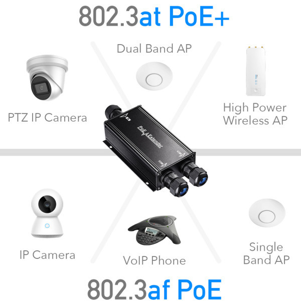 2-Channel Outdoor Gigabit PoE Extender, Model: POE25 Kompatibilan sa IEEE802.3af i IEEE802.3at, Proširuje domet PoE i Ethernet-a za dodatnih 100 metara, Nije potrebno dodatno napajanje, Automatski otkriva i štiti PoE opremu od postojanja oštec´eni pogrešnom instalacijom, Mreža pune brzine na celoj produženoj udaljenosti, Kompaktna veličina, dizajn za montažu na zid, Jednostavna plug-and-play instalacija, EMI standardi su u skladu sa FCC, CE klasom B Product Name: POE25 No. of channels: 1(PoE IN) into 2(PoE OUT) Pass Through Data Rates: 10/100/1000 Mbps half/full duplex Power over Ethernet input: Pin Assignment and Polarity: Both 1/2(-),3/6(+) and 4/5(+),7/8(-) Power over Ethernet Output: Pin Assignment and Polarity :1/2(+),3/6(-), Output Power: up to 30W for 2 PSE Connectors: Shielded RJ-45, EIA 568A and 568B Network cables: Shielded category 5 (or higher) Dimensions: 230mm x 90mm x 40mm Mounting: Wall of shelf Environment: Indoor or Outdoor Environmental Conditions: •Operating Ambient Temperature: Operating Ambient Temperatur e: -25: to 55 ? •Operating Humidity: Complies with IP67(Support Outdoor rain prevention,need outdoor waterproof UTP cable) •Storage Temperature:-40 to 70 C Regulatory Compliance: IEEE 802.3af (15.4W), IEEE 802.3at (30W), IEEE802.3at 4Pairs(60W)