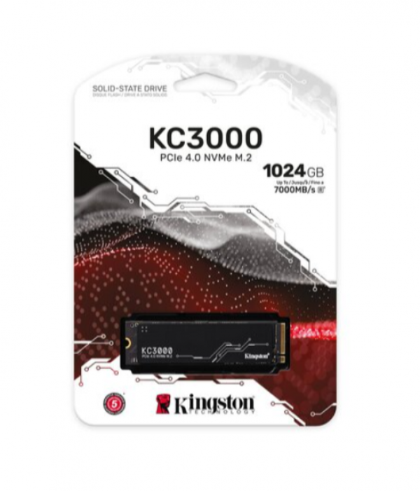 Kingston M.2 NVMe 1TB SSD, KC3000, PCIe Gen 4x4, 3D TLC NAND, Read up to 7,000 MB/s, Write up to 6,000 MB/s (single sided), 2280, Includes cloning s