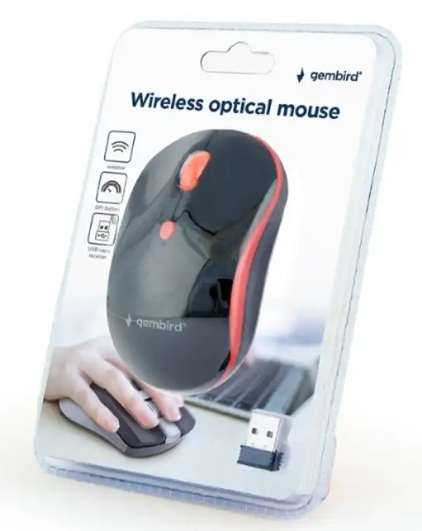 Inteligentna tehnologija za uštedu energije - Dugi vek trajanja baterije Nije potrebna podloga za miša Bežicni opticki miš sa 4 tastera sa USB Nano prijemnikom -CPI dugme za promene brze rezolucije (800 - 1600 DPI) -Gumeno obojena mekana površina Bežicna tehnologija: 2.4GHz, GFSK RF modulacija, 80 kanala, 32 bitni ID uredaja Radi do 10m Klasa snage: RF snaga 3 dBm (max. EIRP) Tip unutrašnje antene; pojacanje antene u dBi (tipicno): 2 dBi ± 1 dBi Opticka rezolucija: 800, 1200, 1600 DPI Napajanje: AAA baterija x 2 kom (nije ukljucena u pakovanju) Potrošnja energije: 3V DC, do 20mA Nano prijemnik: USB 1.1 kompatibilan, težina 2g, 6x14x18mm Miš: dimenzije 103x55x30mm, neto težina 56,5g (bez baterija) Uslovi rada: -5...45 stepeni Celzijusa, 10-80% vlažnosti