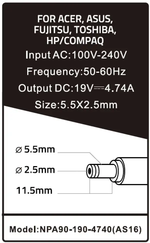 NPA90-190-4740 (AS16) ** Gembird punjac za laptop 90W-19V-4.74A, 5.5x2.5mm black (804)