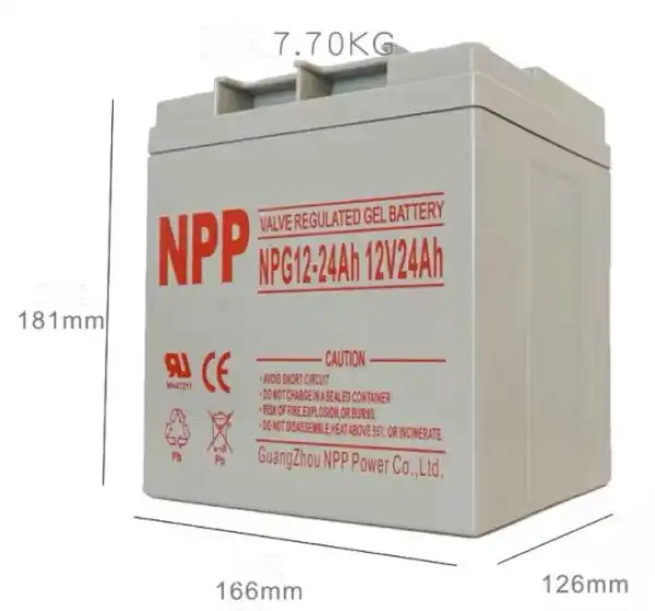 NPP NPG12V-24Ah, GEL BATTERY, C20=24AH, T14, 166x126x174x181, 7,6KG, siva
