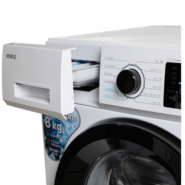 | Programi: | Pamuk ECO 40°-60° Pranje sportske odeće Glomazni veš (posteljina i sl.) Dečiji osetljivi veš Pranje parom Mešani veš Brzo 15' Hladno pranje 20°C Vuna, Centrifuga Ispiranje i centrifuga |